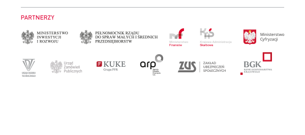 z Ministerstwa Przedsiębiorczości i Technologii, Ministerstwa Inwestycji i Rozwoju, Ministerstwa Finansów, Krajowej Administracji Skarbowej, Polskiej Agencji Rozwoju Przedsiębiorczości, Punktu Informacyjnego Funduszy Europejskich, Urzędu Dozoru Technicznego, Enterprise Europe Network, Banku Gospodarstwa Krajowego, PKO Banku Polskiego, Agencji Rozwoju Przemysłu oraz Zakładu Ubezpieczeń Społecznych będą do Państwa dyspozycji.