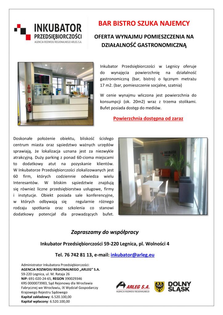 Bar BISTRO szuka najemcy!