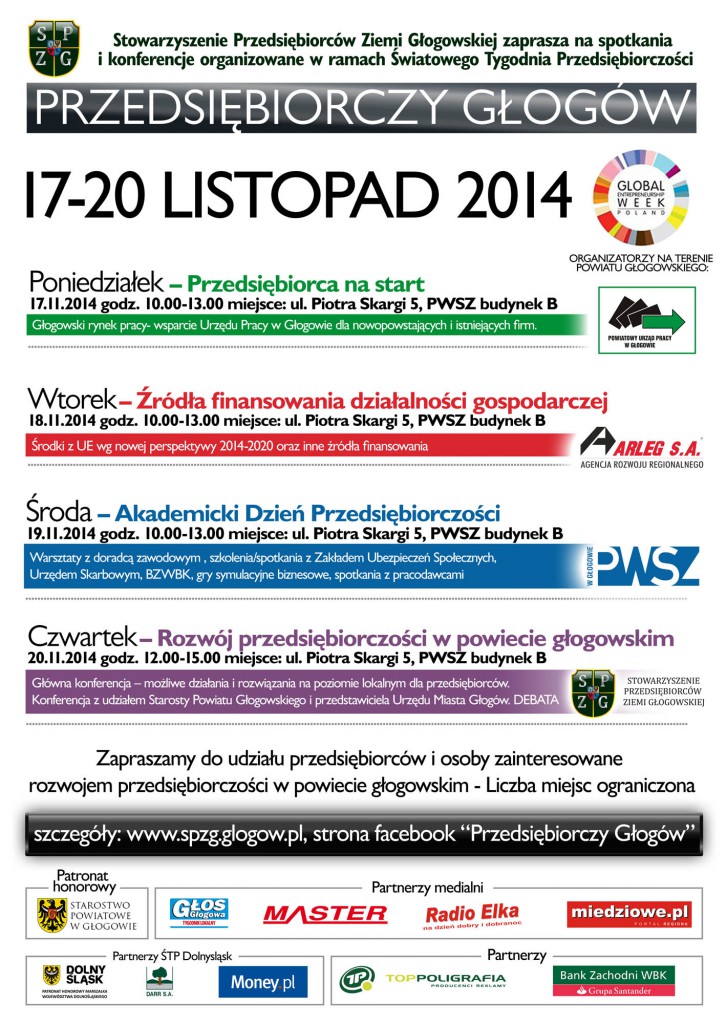 Agencja Rozwoju Regionalnego ARLEG S.A. zaprasza na spotkania i konferencje w ramach Tygodnia Przedsiębiorczości w Głogowie .