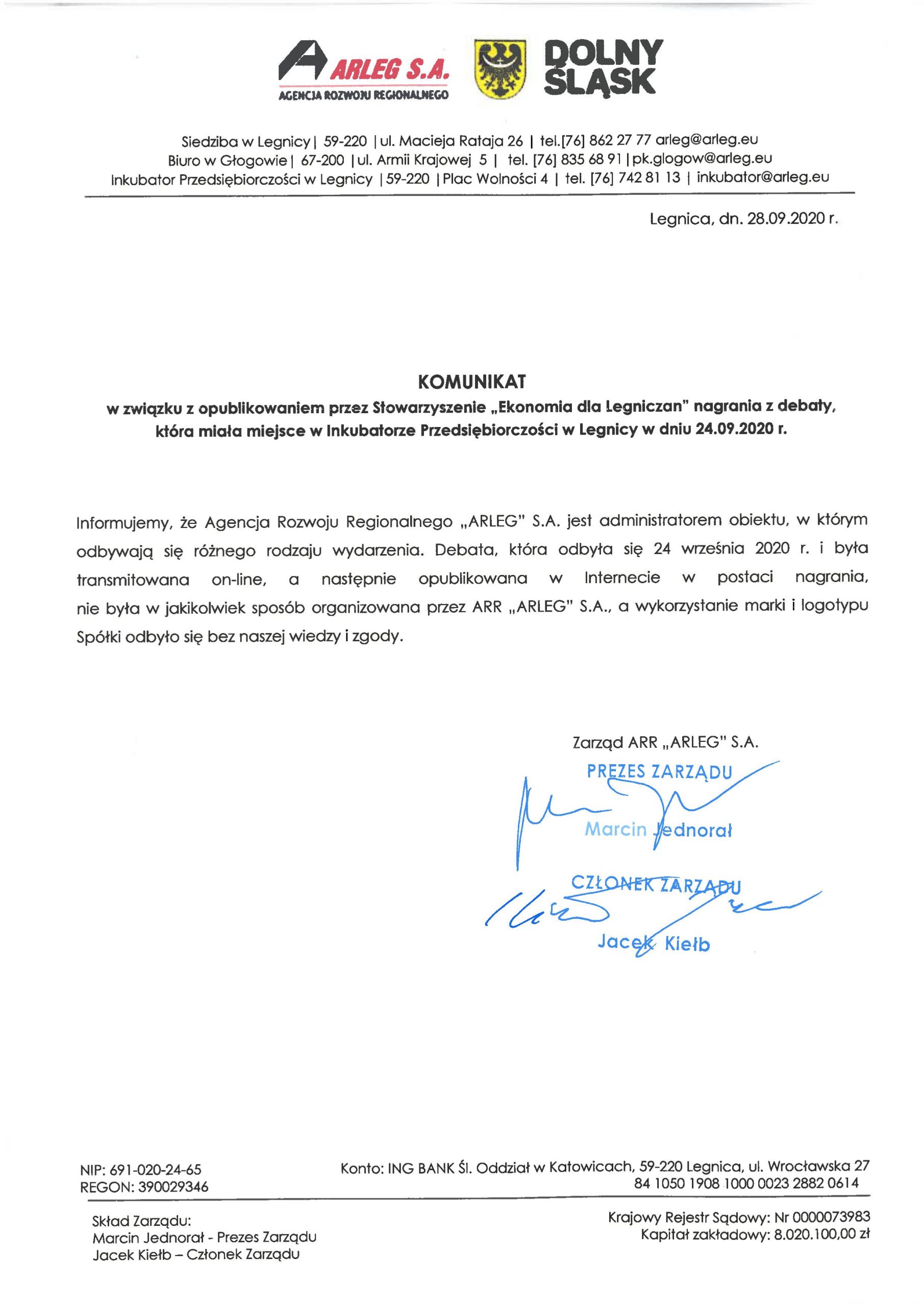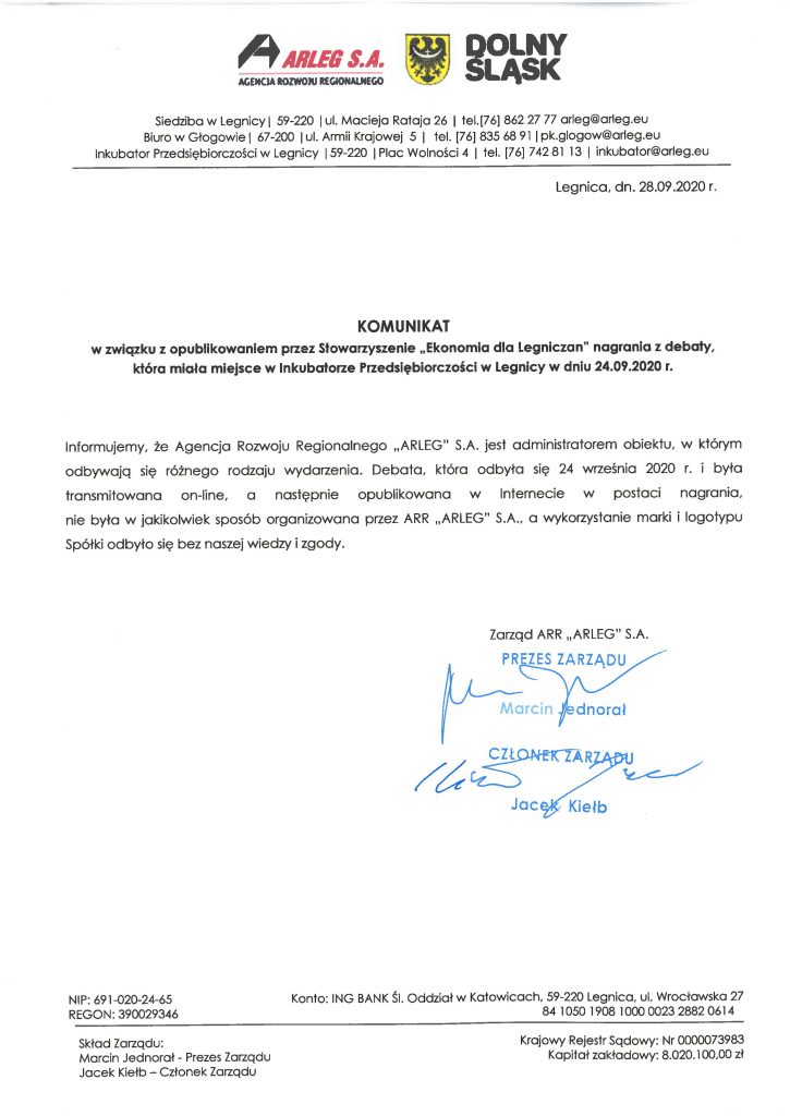 Komunikat w związku z wykorzystaniem marki i logotypu ARLEG
