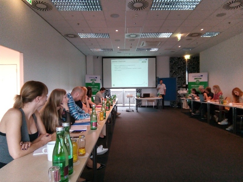 Podczas pierwszego dnia spotkania Partnerów (7 czerwca 2018r.) skupiono się na omówieniu finalizacji działań związanych ze sprawozdaniem z potrzeb operatorów publicznych w zakresie szkoleń, opracowaniu modułów szkoleniowych dla trenerów, a następnie zorganizowania szkoleń dla operatorów regionalnych, a także profilu CV operatorów odpowiedzialnych za realizację planów energetycznych. Lider Projektu zaproponował również plan działań na najbliższe 6 miesięcy związany z kolejnymi wizytami studyjnymi, ze szkoleniem dla trenerów oraz organizacją kursów szkoleniowych w regionach Partnerów. Spotkanie zakończono omówieniem kolejnych działań promocyjnych w ramach projektu FIRECE.
